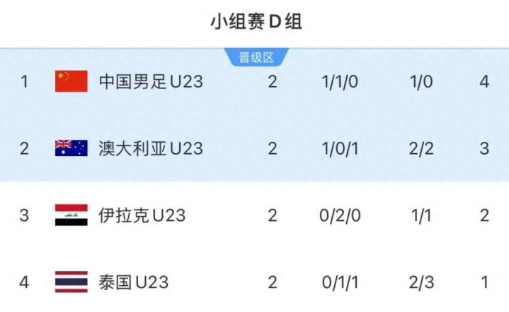 D组的积分形势,构成了一个极其微妙且罕见的“等差数列”:中国4分,澳大利亚3分,伊拉克2分,泰国1分。