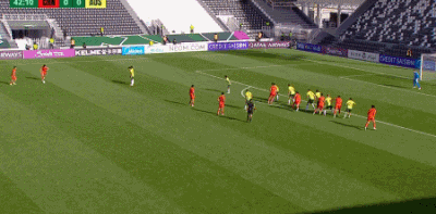 比赛第43分钟,澳大利亚犯规送给中国队一个前场任意球,彭啸禁区点球点凌空爆射破门!中国队1-0澳大利亚队!