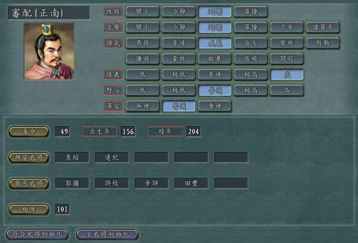 可偏偏审配的人际关系差到了极点,全游戏没有一个亲爱武将,反而有5位同僚都厌恶他,而且这5位全是袁绍麾下的主要谋臣,郭图、许攸、辛评、田丰、逢纪。更离谱的是,在审配的亲爱武将栏里,竟然还赫然写着逢纪的名字,而逢纪却把审配列为厌恶对象,这种单向奔赴的仇家关系,在游戏里也是很奇葩了。