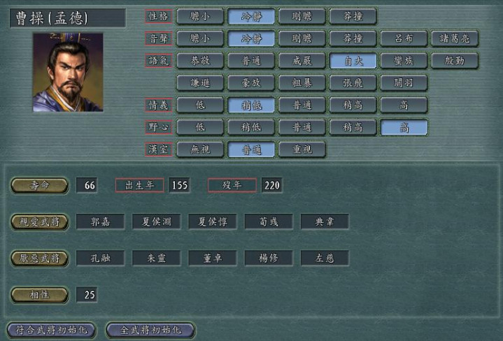 除了这四位之外,游戏里还有不少人际关系复杂的武将,比如曹操,亲爱他的武将有十几位,厌恶他的也不在少数,算是“一半是朋友,一半是敌人”的典型了。但比起曹操的“毁誉参半”,这四位武将的“孤家寡人”设定,无疑让他们在乱世中更难立足。