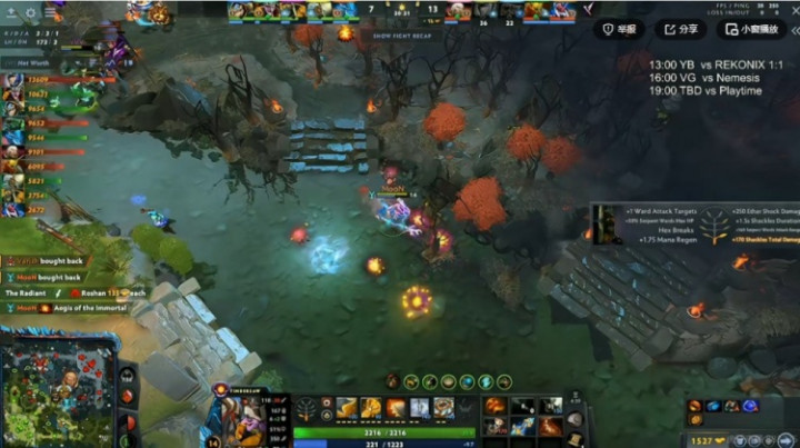 35分钟Yang伐木机被抓,随后高地团天火+变羊秒掉了天命的小Y,REKONIX拆掉两路高地想一波!Fbz潮汐找到机会跳大击飞三个!jikroy露娜爆炸输出收割战场,再倒三人之后YB敲出了GG!被淘汰!