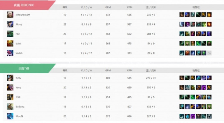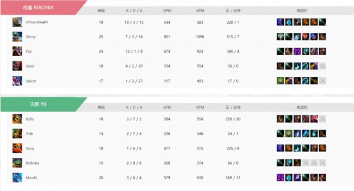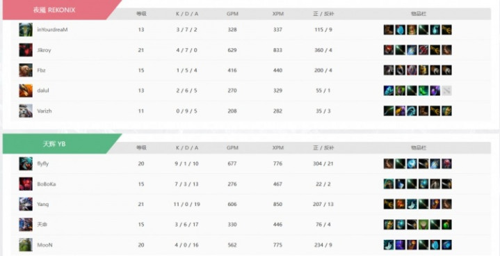 21分钟YB偷掉肉山,MooN拉席克带盾,但是flyfly小骷髅和Yang马尔斯被留住!29分钟中路团战YB强杀飞机失败反而flyfly小骷髅再次被秒,REKONIX一波0换4之后拉开一万二经济差!32分钟肉山团Yang马尔斯交出买活,但是有船油加持的jikroy飞机完全死不了!REKONIX团灭YB之后带盾,34分钟一波0换4结束比赛,扳平了比分!
