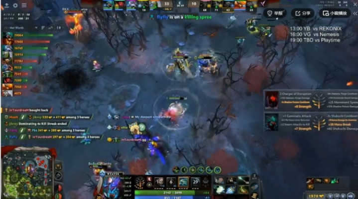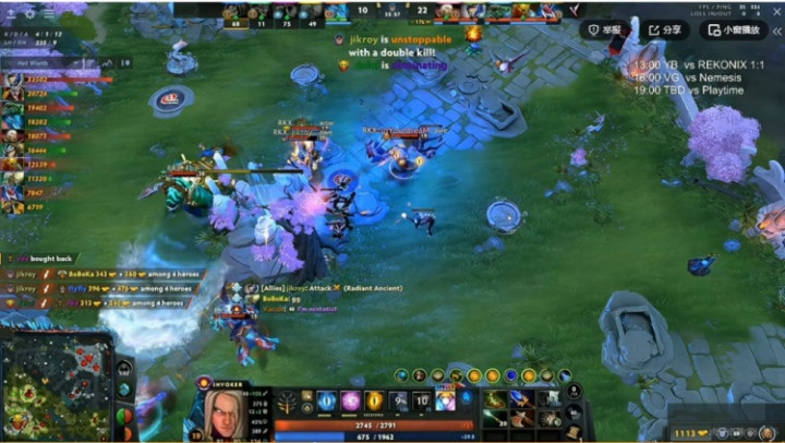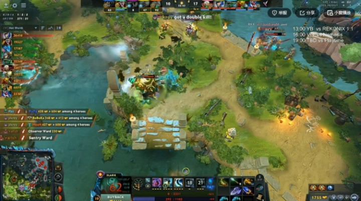 23分钟上路团Yang大鱼人BKB一开一打三毫无压力,jikroy影魔直接被秒啊!这波YB又是轻松0换4,不过后续下路团战flyfly隐刀蚂蚁被jikroy影魔强杀!这波jikroy影魔三杀,REKONIX这波守住了!