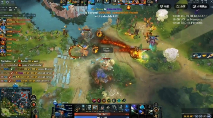 双方开局就频繁交锋,但是几波交锋过后YB都是优势,上路Yang大鱼人+Boboka毒狗连续克制到了jikroy影魔!YB逐步拿到了经济的优势!14分钟下路团战YB先秒Fbz人马,随后天命杰奇洛连续减速留人,Yang大鱼人带队追击打出0换4,这波打完YB经济领先来到8K!