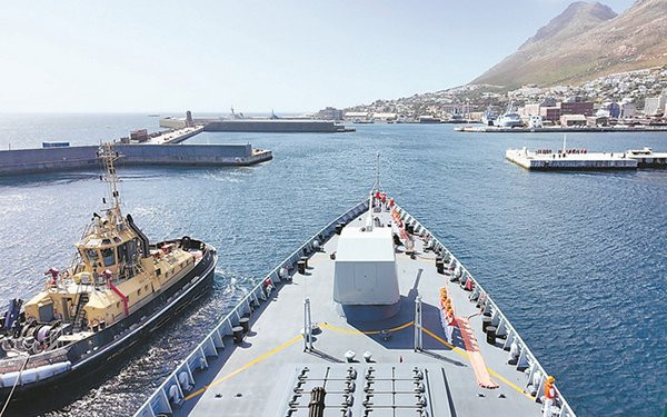 唐山舰靠泊南非西蒙斯敦港。中国军网