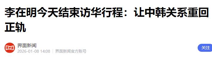 界面新闻:李在明今天结束访华行程:让中韩关系重回正轨