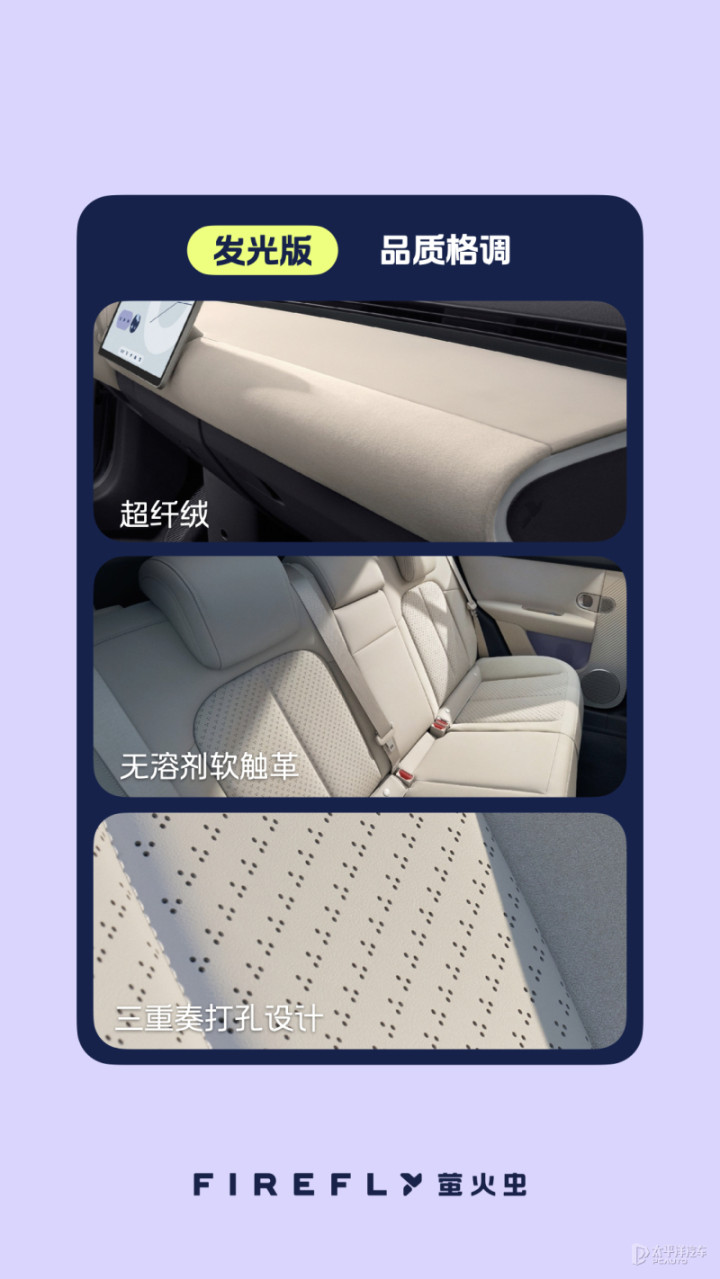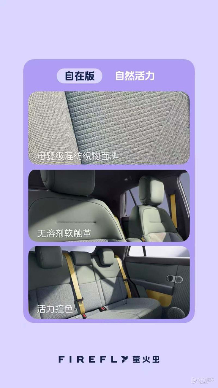 萤火虫的内饰也延续了这一风格,以简约风格,打造自在空间。压低的IP台拓宽前向视野,横幅方向盘采用抗菌超纤皮质,握感舒适。怀挡设计让前排空间更宽敞,开云app登录入口13.2英寸2.5k高清中控屏与6英寸灵动仪表横向布局,信息读取便捷。主副驾贯穿式中央通道方便交流,宽大座椅带来舒适体验。