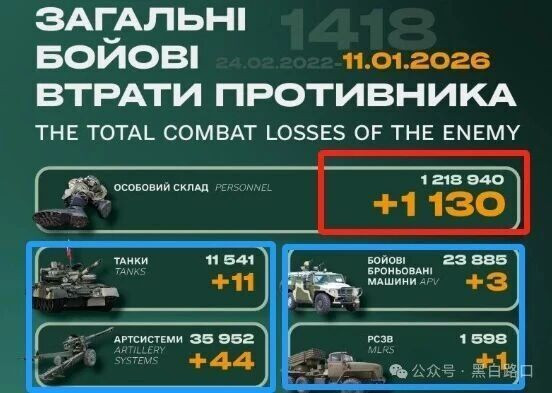 俄乌战争第1418天(2026年1月11日),过去24小时世界局势变化莫测: