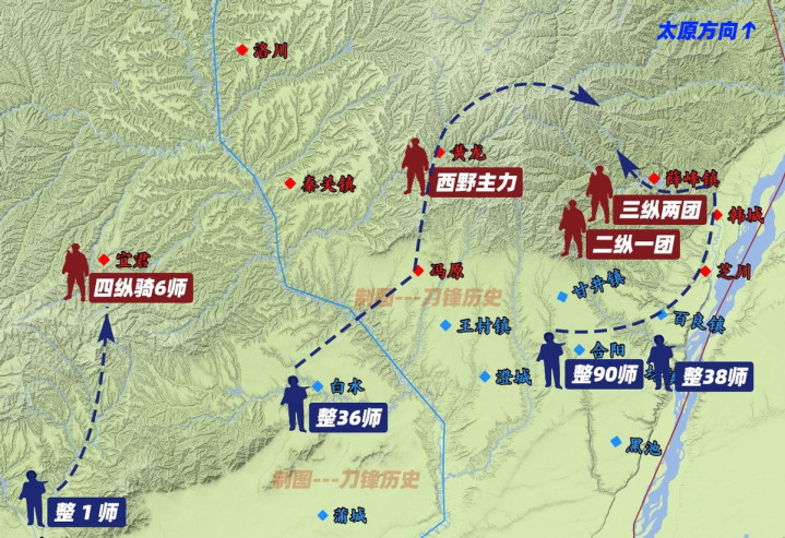 换句话说,整编第三十六师已经被西野主力当作一个“单独目标”,锁定在冯原—壶梯山—王村镇这个半圆形区域内。